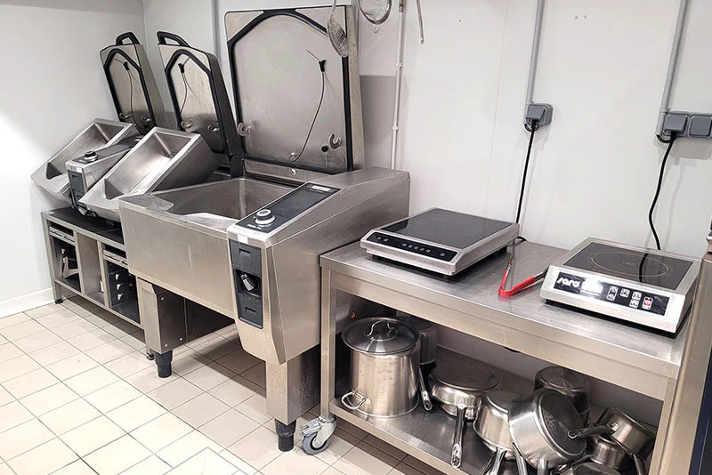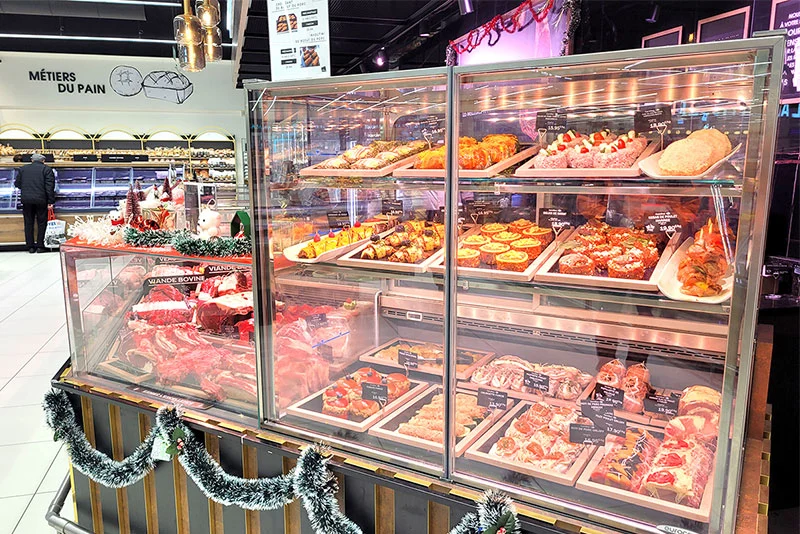 Dans la partie traiteur, des marmites intelligentes permettent désormais des cuissons longues nocturnes. Des fours électriques, sauteuses multifonctions, trancheuses et hachoirs facilitent la réalisation de produits frais, festifs ou de snacking très appréciés par la clientèle.