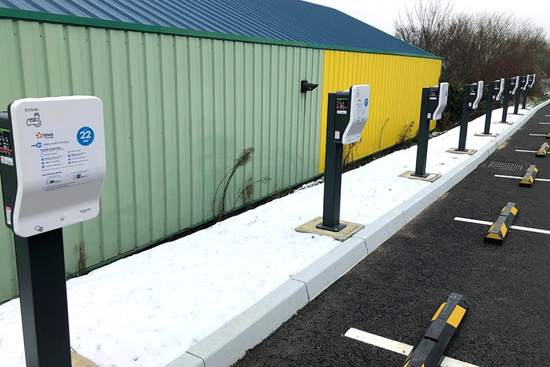 Pour faciliter l’électromobilité de ses clients, huit bornes de recharge de véhicules électriques ont également été installées par Izivia, filiale d’EDF, et partenaire de Dalkia Froid Solutions.
