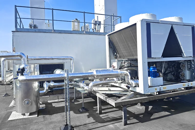 Pour optimiser cette nouvelle installation et garantir un fonctionnement optimal pour le confort des employés, deux pompes à chaleur (PAC) air/eau d’une puissance de 204 kW chacune ont été retenues. Une refonte de l’ensemble des réseaux a également été mise en place et près de deux cent ventilo-convecteurs ont été installés.